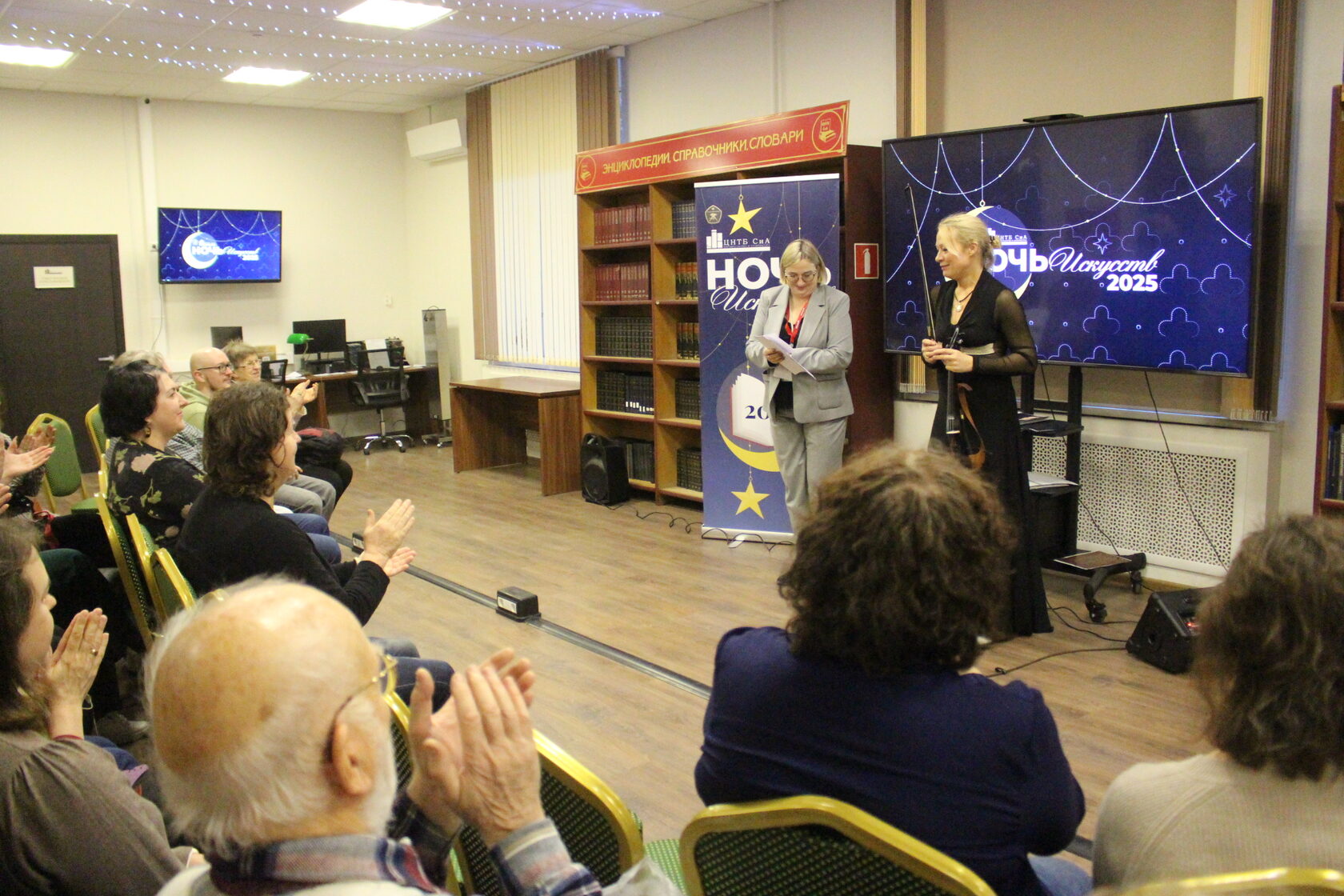 В это время в читальном зале звучала чарующая музыка в исполнении Валерии Стемасовой, профессиональной скрипачки, выступающей со звёздами первой величины. И что особенно приятно, вход на её концерт в ЦНТБ СиА был совершенно бесплатным и открытым для всех.