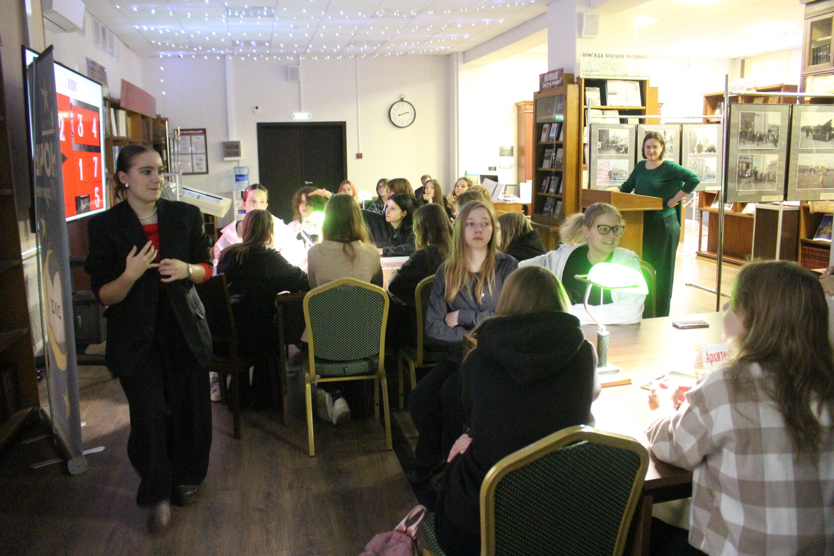 Продолжила «Ночь искусств» интеллектуальная битва – викторина «Архитектура по ту сторону экрана». Студенты Колледжа архитектуры и строительства №7 соревновались в знании кинолент, угадывая фильм, сериал или мультфильм по кадрам с архитектурными шедеврами, аудиофрагментам, информации о достопримечательностях, зодчих, странах и героях картин.