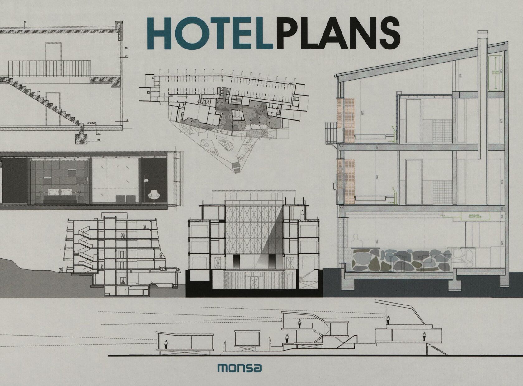 «Планы отелей» содержат более 300 планов этажей и фасадов, а также конструктивные детали 35 гостиничных проектов со всего мира, отобранных за то, что они являются уникальными как по своей архитектуре, так и по дизайну интерьера, которые отличаются от типичной концепции стандартного отеля и предназначены для путешественников, ищущих комфортное проживание, а также необычное и незабываемое место для ночлега.