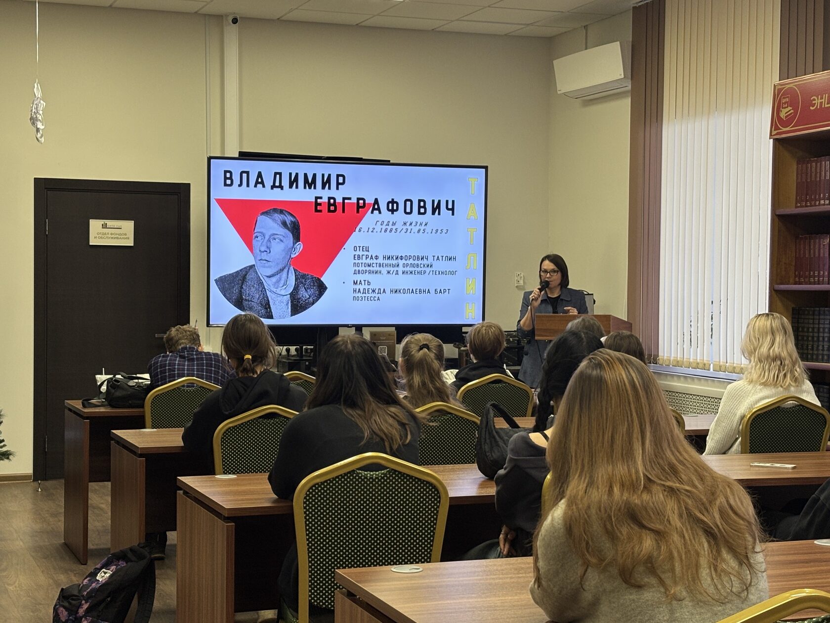 В библиотеке по строительству и архитектуре состоялась захватывающая лекция о творчестве выдающегося советского художника Владимира Татлина. . Мероприятие, организованное специально для учащихся колледжа архитектуры, дизайна и реинжиниринга, провела библиотекарь отдела библиотечного обслуживания Н. В. Иванова.